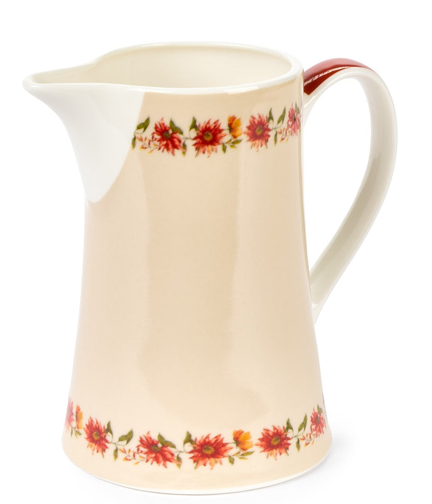 Brocca in ceramica color panna, bordo con fantasia fiori.