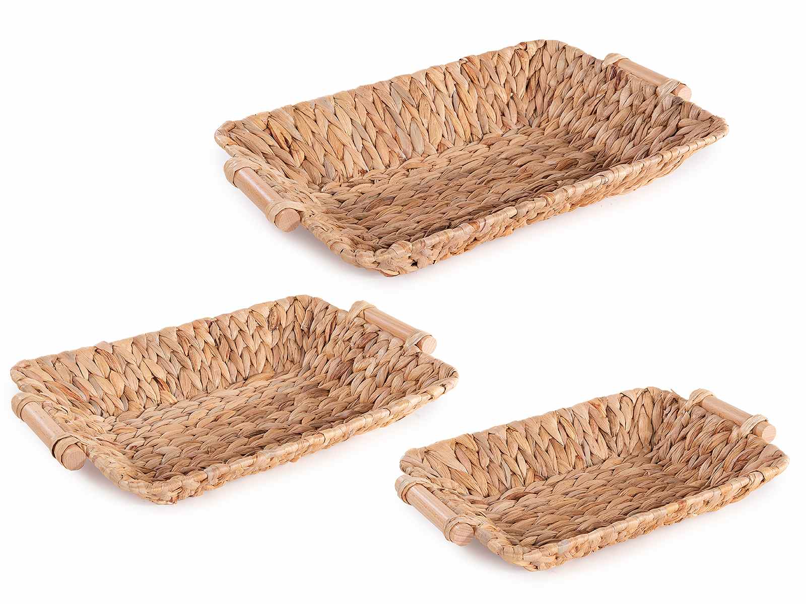 Cestino a vassoio in giacinto con manici di legno