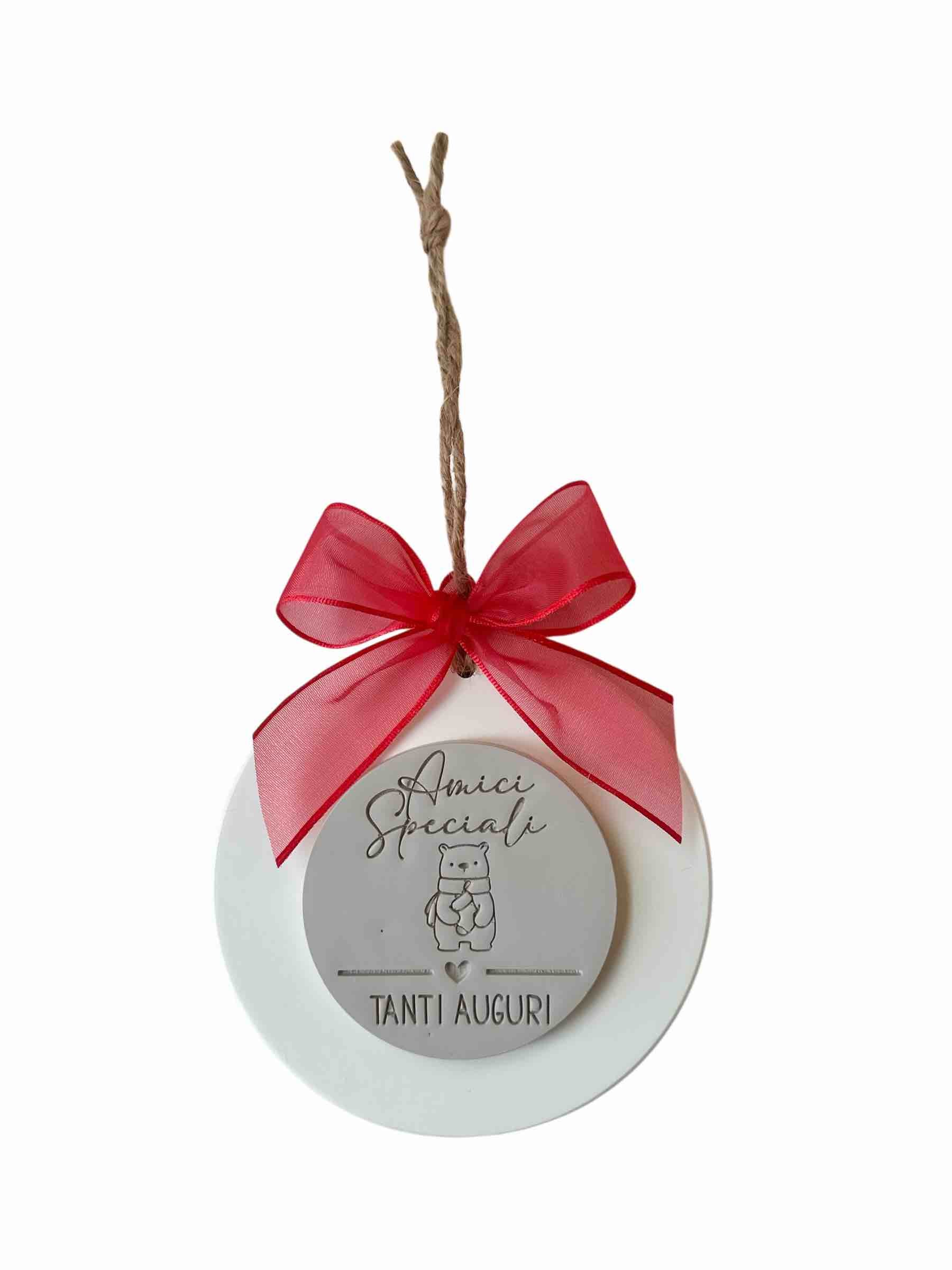 Ciondolo da appendere in legno laccato bianco con dedica in polvere ceramica colorata