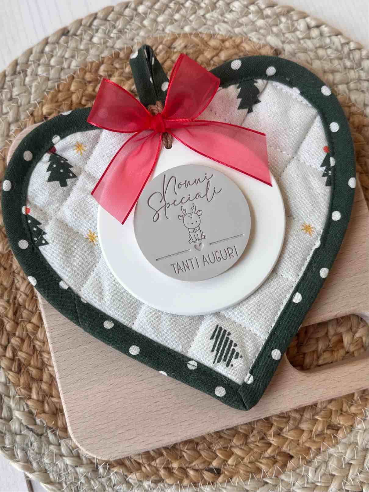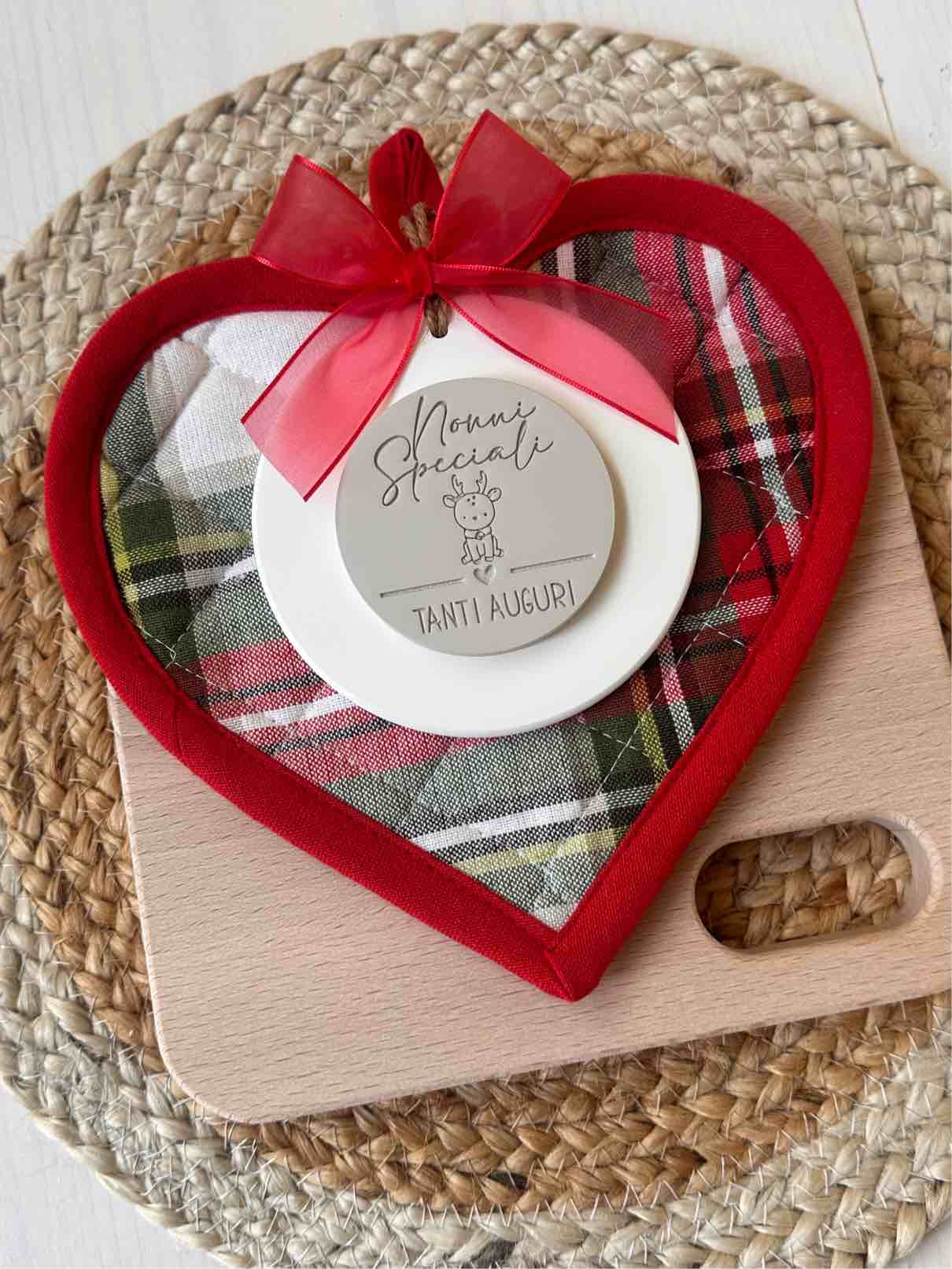 Ciondolo da appendere in legno laccato bianco con dedica in polvere ceramica colorata