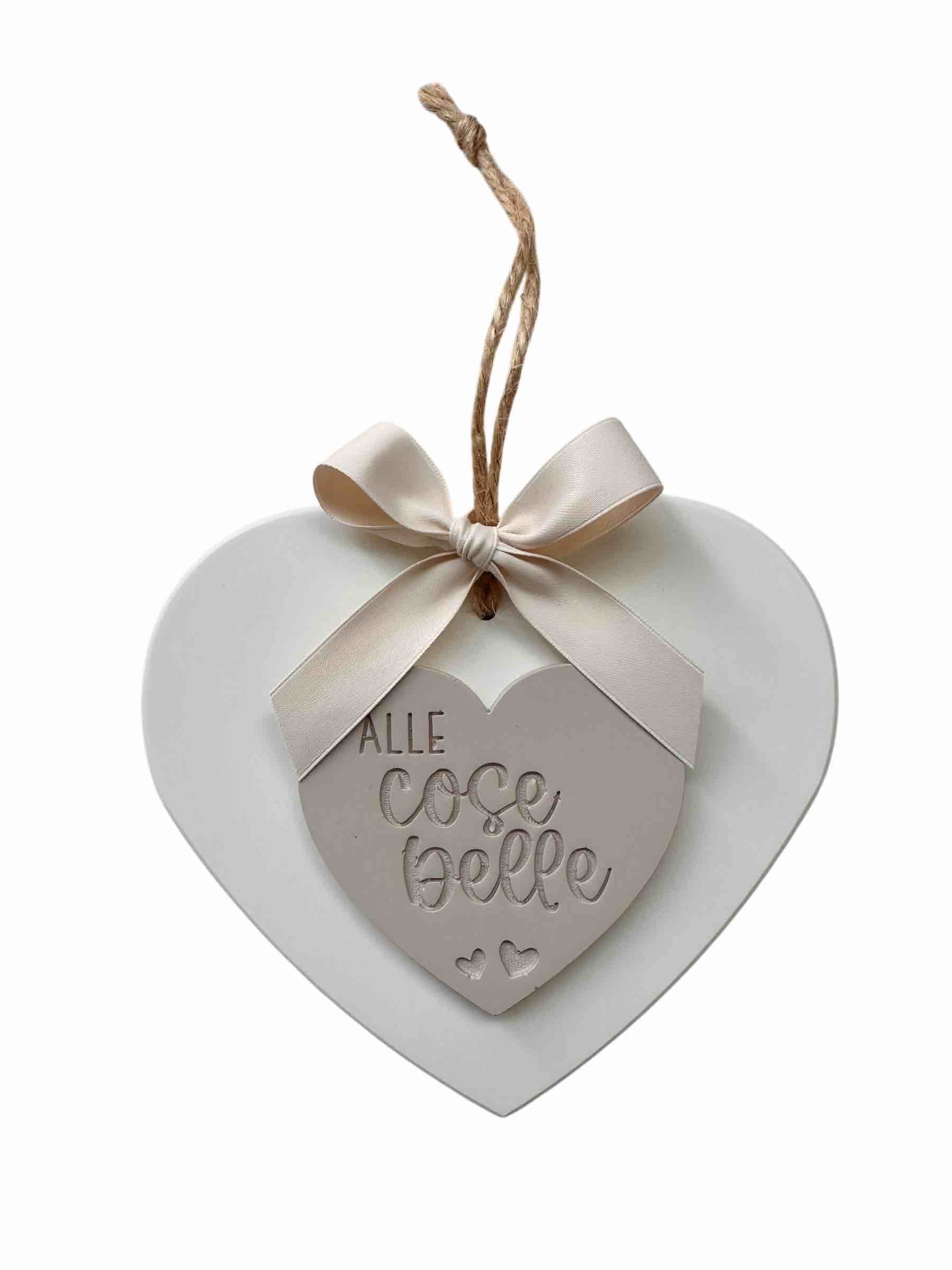 con cuoricino in polvere ceramica color tortora con la scritta Alle Cose Belle