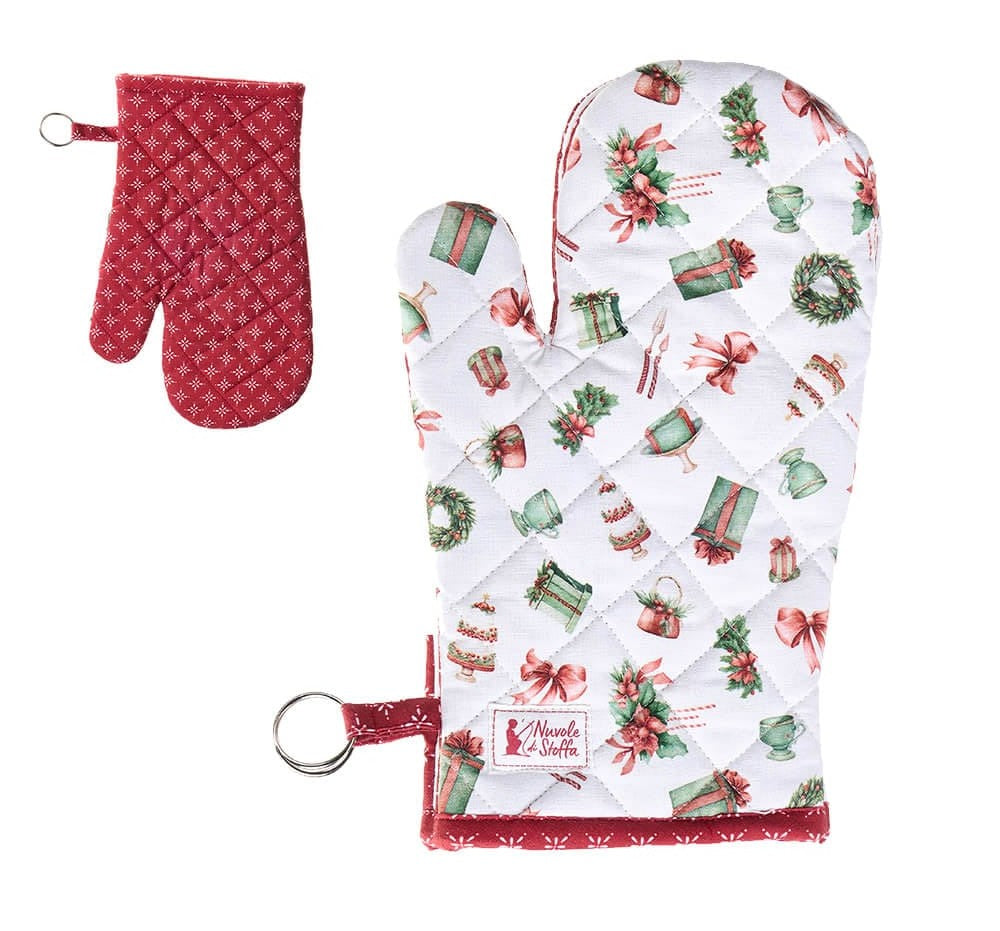 Guantone con bellissimi disegni natalizi, retro di color rosso con disegni geometrici bianchi