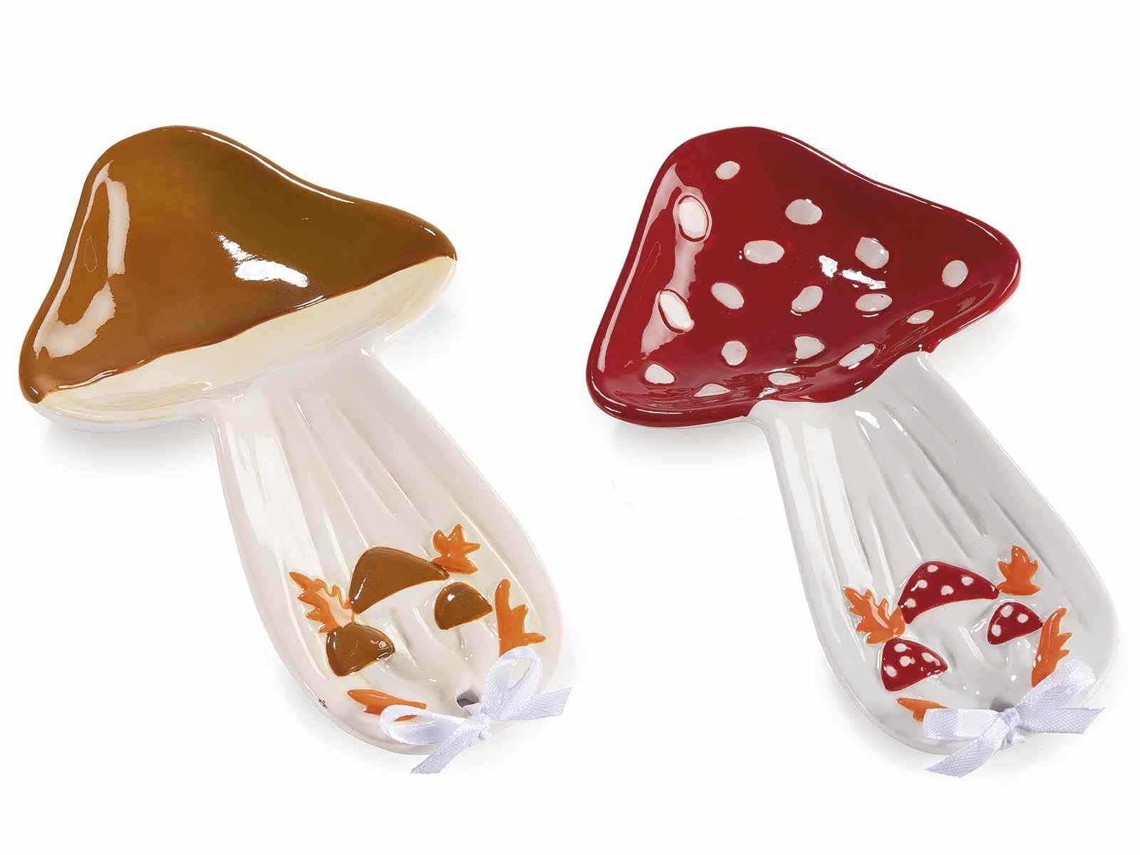 Poggiamestolo in ceramica a forma di fungo e decori incisi e in rilievo