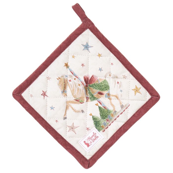 Bellissima presina impreziosita da un delicato decoro natalizio ispirato alle atmosfere incantate delle giostre.