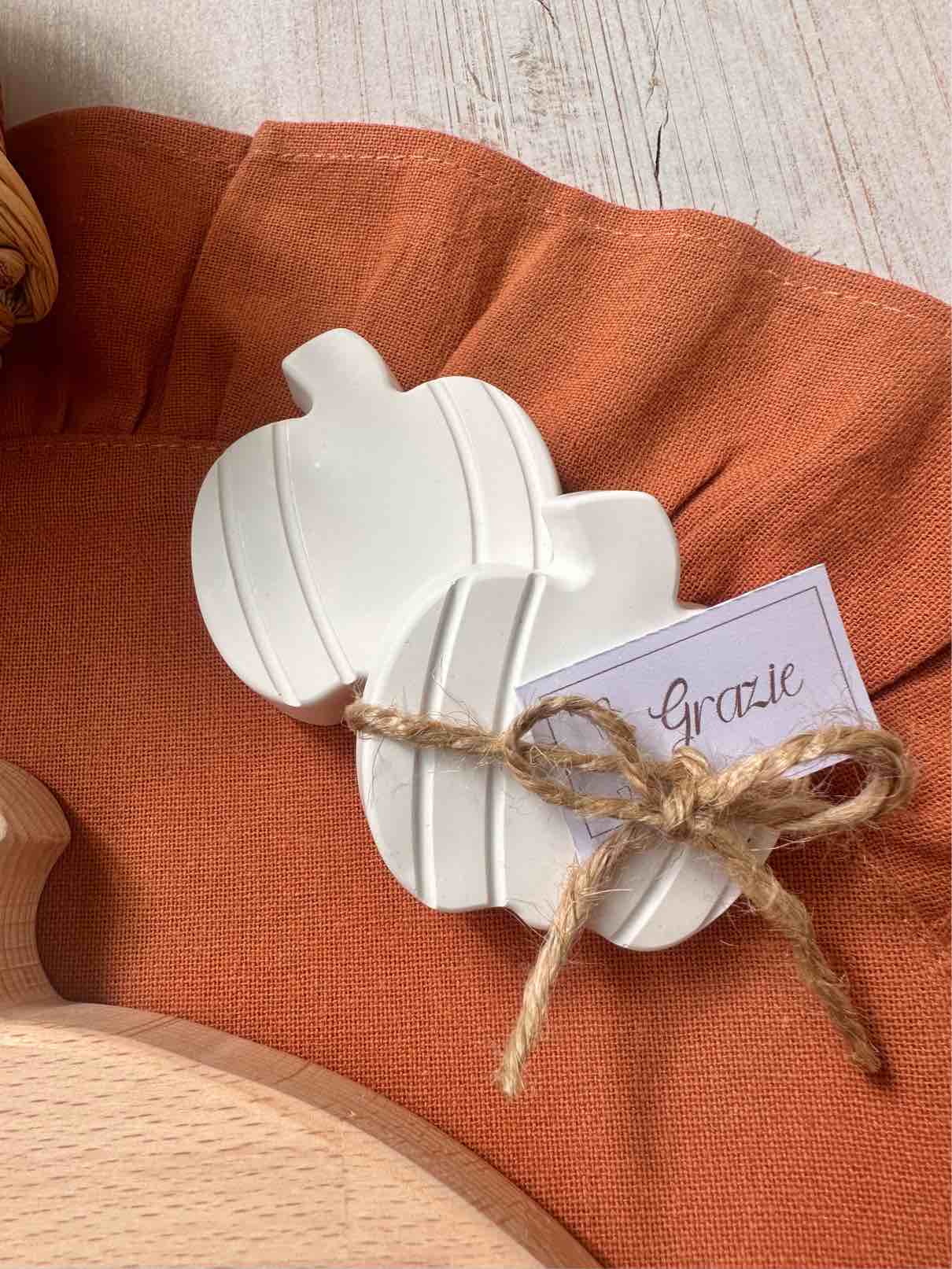 Segnaposto a forma di zucchetta in polvere ceramica bianca.