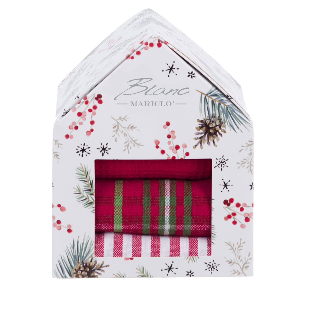 Tre canovacci fantasia assortita nei toni del rosso, confezionati in questa bellissima casetta.