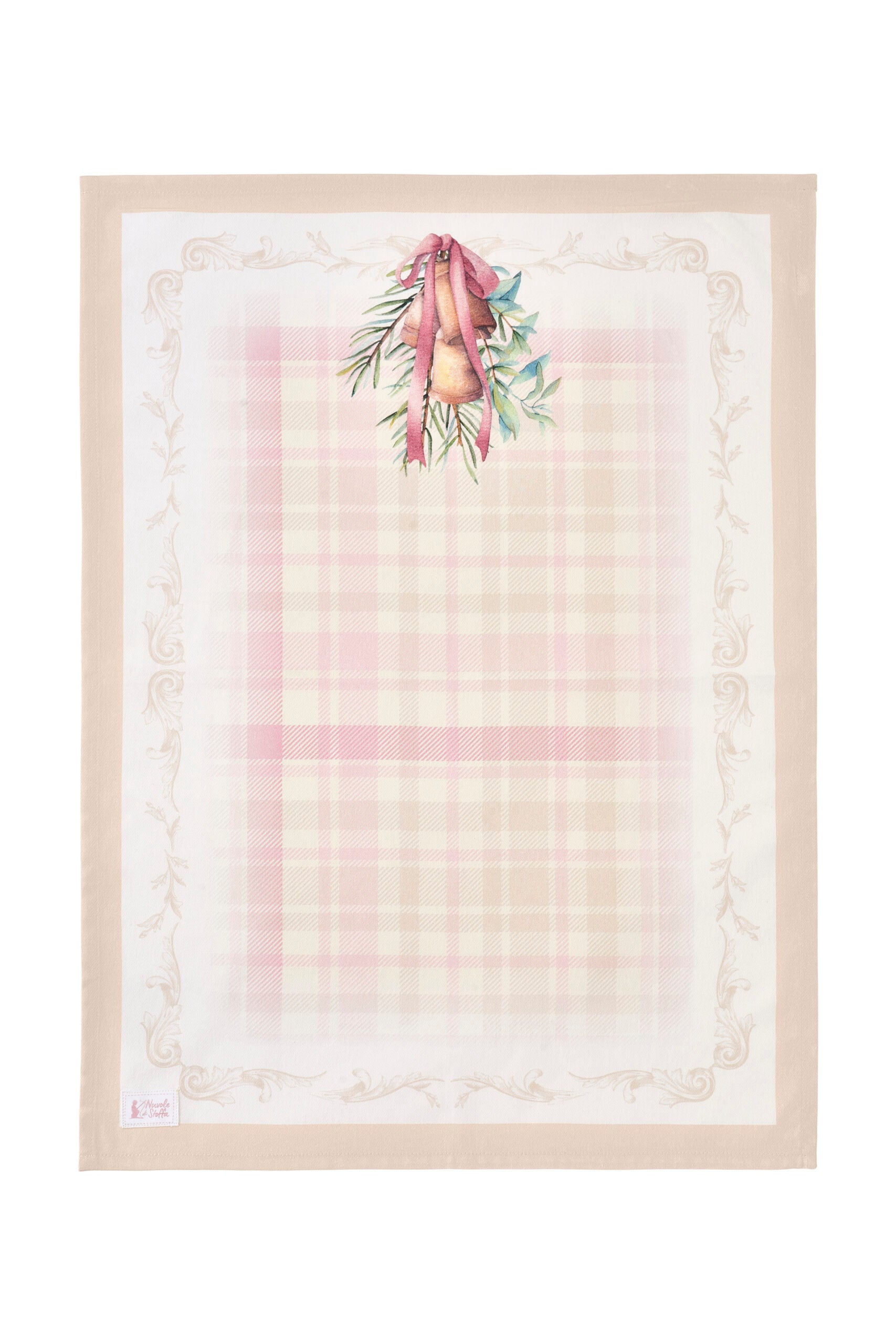 Fondo color avorio raffiguranti campanelle dorate e rami verdi su fantasia scozzese