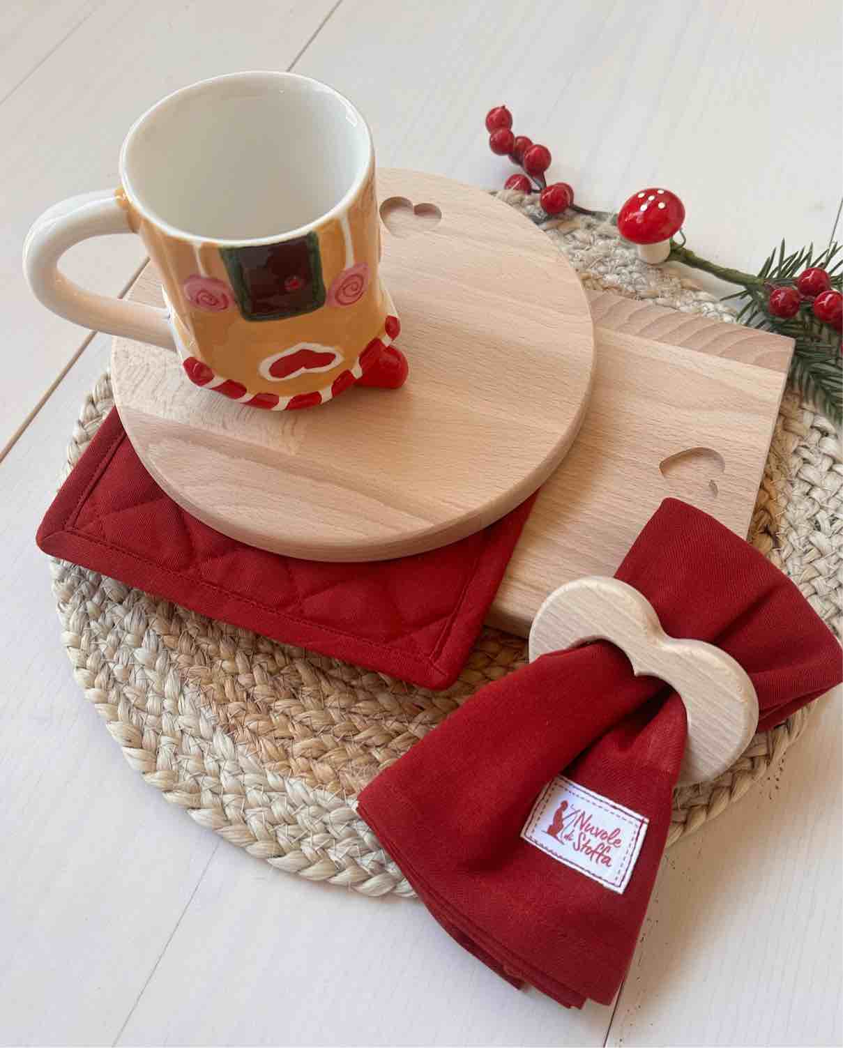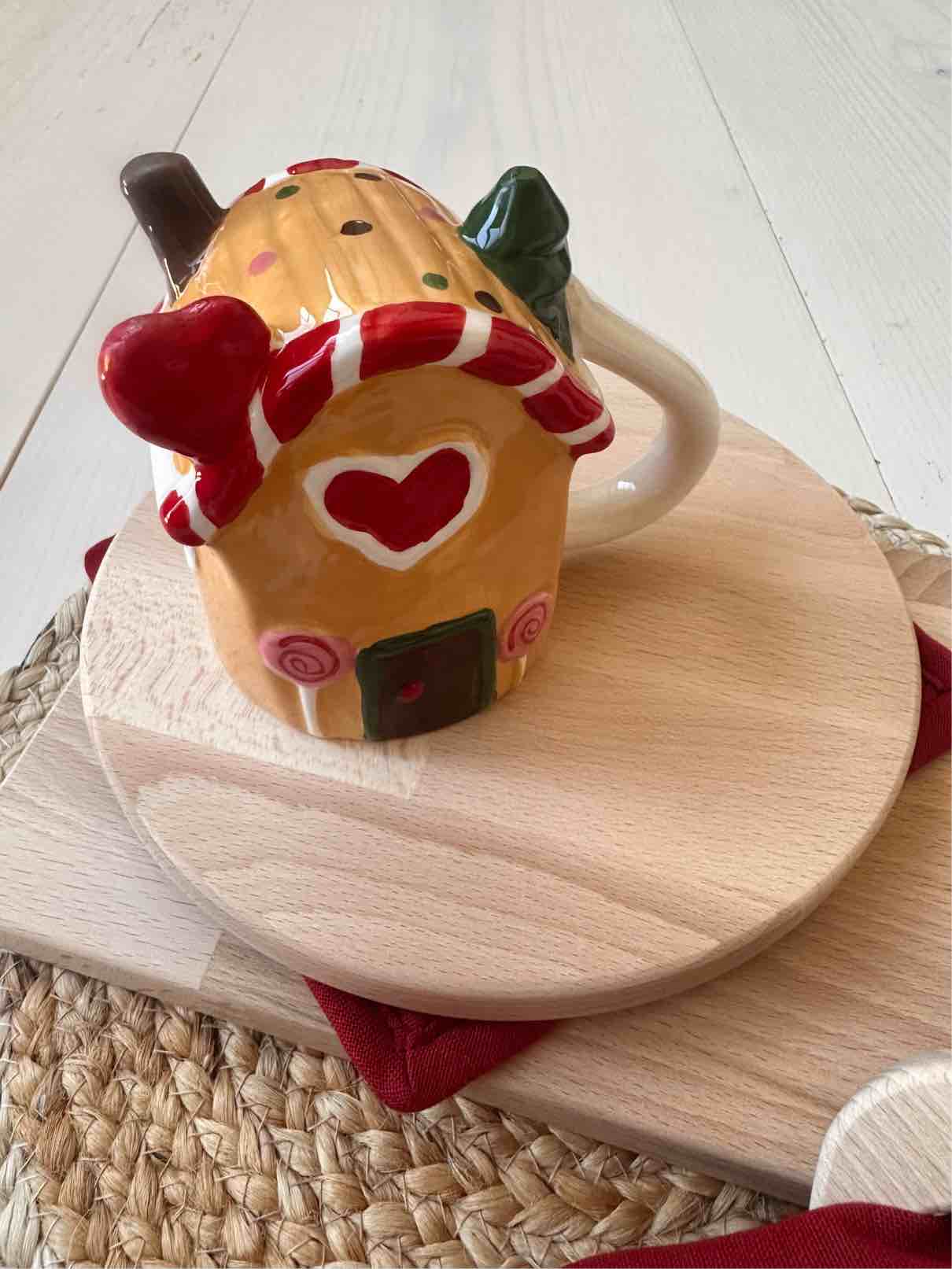 Ispirata ad una casetta di marzapane, decorata con cuoricini rossi. Il design capovolto mostra ulteriori decorazioni natalizie, rendendola un pezzo unico e divertente.