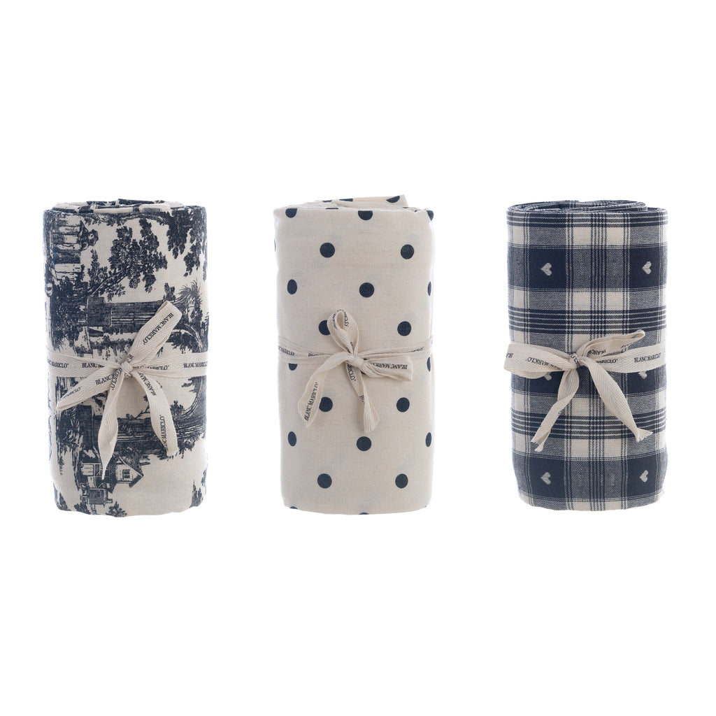 Disponibile in 3 fantasie dai toni avorio e blu